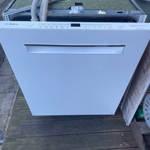 Bosch oppvaskmaskin i hvit utførelse. Frittstående modell med frontbetjening og standard bredde. Maskinen har øvre og nedre kurv for tallerkener, glass og bestikk, samt bestikkurv i nedre kurv. Innvendig kar og spylearmer i rustfritt stål. Frontpanel med programvelger og startknapp. Egnet for vanlig bruk på kjøkken til daglig oppvask av servise og kjøkkenutstyr.
