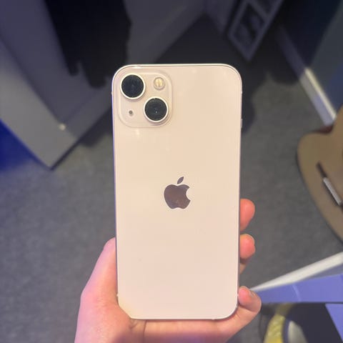 Apple iPhone 13 smarttelefon med 128 GB lagringsplass. Modellen har dobbelt kamerasystem på baksiden og frontkamera i skjermen. Enheten har berøringsskjerm over hele fronten og fysisk sideknapp. Passer for daglig bruk som surfing, sosiale medier, foto, video og apper. Støtter nedlasting og lagring av apper, bilder, musikk og andre filer innenfor tilgjengelig lagringskapasitet på 128 GB.