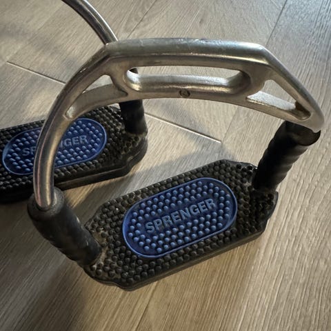 Komplett sett med Rider in balance stigbøyler. Stigbøylene er i stål. De er kjøpt nye for 2 mnd siden. Nypris på fult sett er 7000,-.
