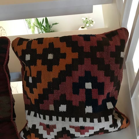 2 stk vintage kelimputer 45x45 cm. Selges samlet og med inleggsputer i dun. Må hentes.