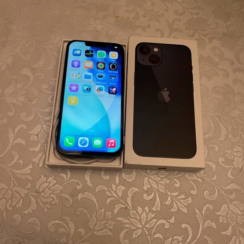 3 år gammel Apple iPhone 14 mobiltelefon med 256 GB lagringsplass . Modellen har dobbeltkamera på baksiden, frontkamera i skjermen og Lightning-tilkobling. Enheten støtter moderne iOS-versjoner, apper, meldinger, samtale- og nettfunksjoner, samt lagring av bilder, video, musikk og dokumenter.