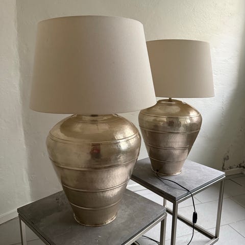 2 stk elegante stålamper med oval lampeskjerm og stål understell.