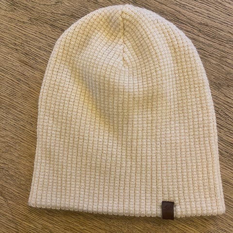 Fogg Gildeskål Kjelien beanie i en pen dempet oransje. (Fargen likner mer det bildet jeg har tatt, enn det fra nettsiden)