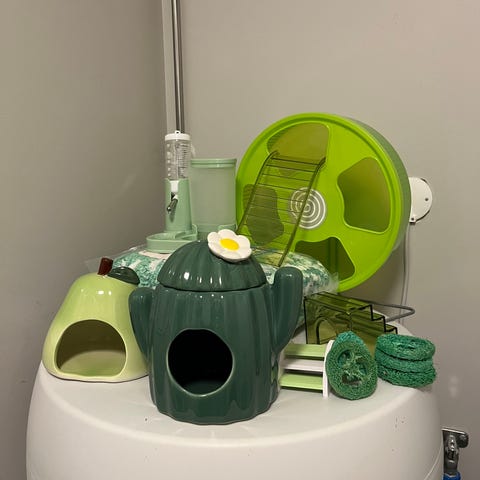 Selger lite brukt hamsterbur🦫Det følger med en del tilbehør og egentlig alt du trenger😊Det er også med en fraktekasse.