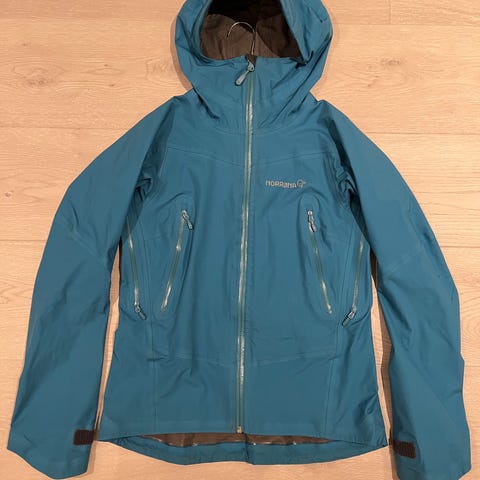 Norrøna regnjakke for dame i størrelse S. Jakken er laget i Gore-Tex-materiale og er blå i to fargetoner. Den har hette, hel glidelås foran og glidelåslommer i siden. Mansjettene kan justeres med borrelås. Egnet som ytterjakke til regnvær og andre utendørsaktiviteter der det er behov for vanntett og vindtett bekledning.