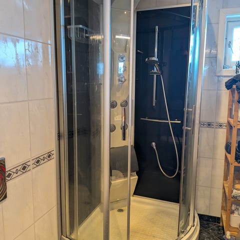 Toalett Ifø-dusjkabinett, Servant m- skap speil lampe