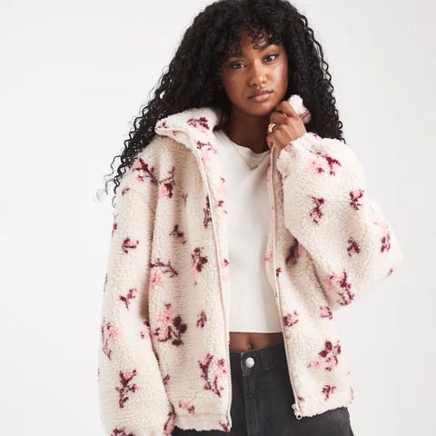 Ny: Miss Selfridge floral borg zip jakke , teddy / pile jakke