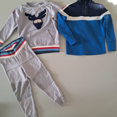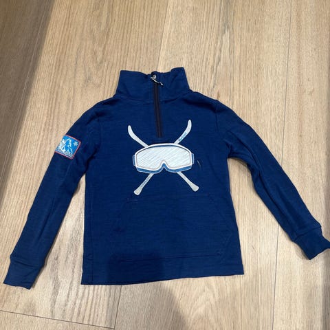 WoolLand ullgenser str 98/104. Litt slitt nederst på armene, og ett sted på lomma foran, ellers hel og fin. Mye bruk igjen!