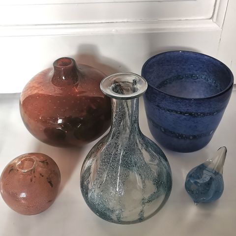 Kosta Boda Bertil Vallien, liten samling med fem ulike glasskunst.