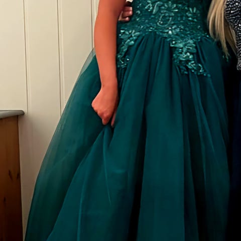 Smaragdgrønn ballkjole kjøpt hos Se min kjole på Majorstuen. Kjøpt ny til ball i januar, kun brukt en gang. Sjal følger med.