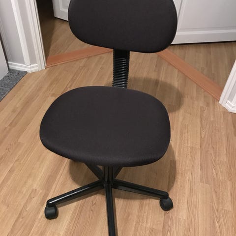 Selger en komfortabel Savo kontorstol i klassisk svart skinnimitasjon. Stolen har regulerbar høyde og vipp, femstjerners fot med hjul og solide detaljer i metall. Den er brukt, men i pen stand med normale brukstegn og uten hull eller rifter i trekket.