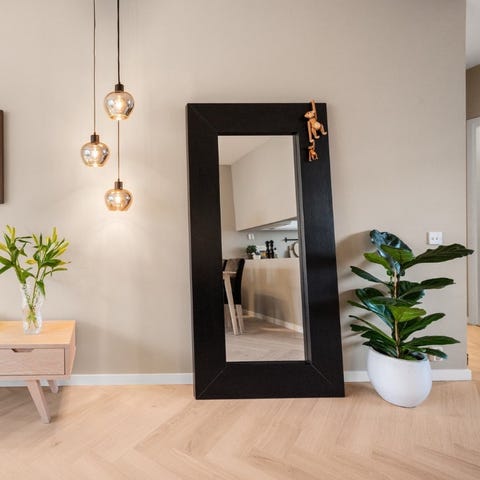 Stort helfigurspeil med sort ramme – kr 200