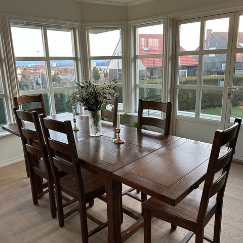 Stolene er stabile, komfortable og passer perfekt til bordets moderne uttrykk.