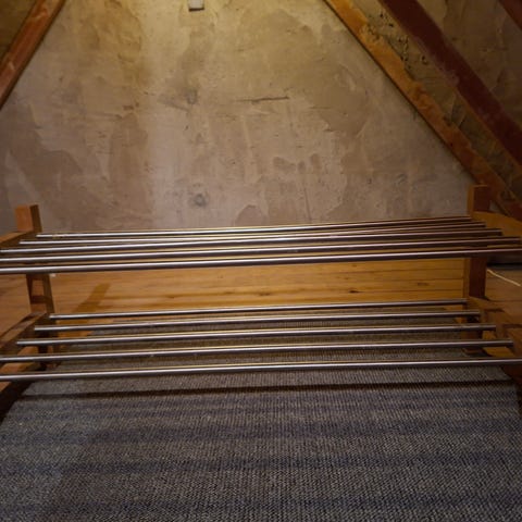 Fin skohylle i eik med benk. Solid kvalitet. Bohus. 80 cm bred. 40 cm høy. Hentes på Siggerud.