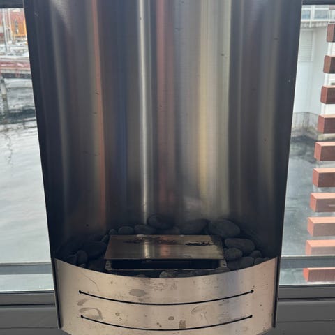 Ovn med klebersteinselementer, et glass mangler(enkelt sak å fikse, ellers fin).