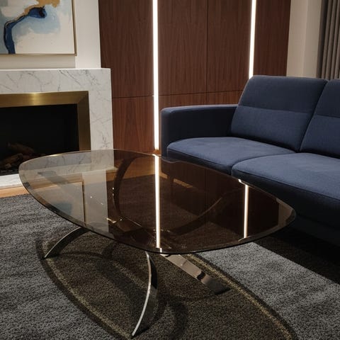Svært flotte forkrommede rørstålrammer med tykke, brune skinnseter. Skinnet har en vakker, naturlig patina. Rammene har noe patina og bruksspor.