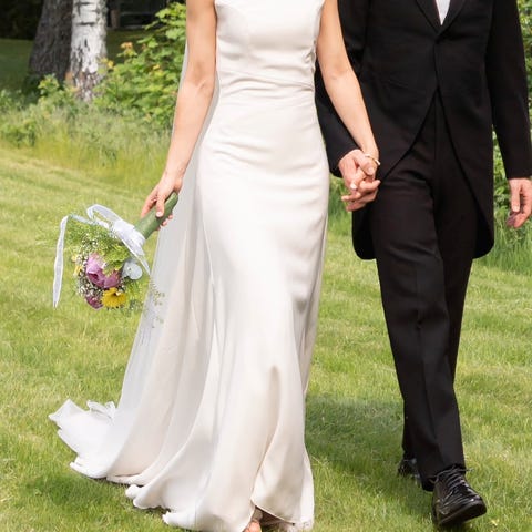 Nydelig, enkel brudekjole ❤️ Den er fra Bianco Eventoi størrelse 38, men er sydd inn. Passer best small. Kjøpt og sydd inn på brudehuset i Tromsø. Jeg er 168 cm, og hadde høye sko.