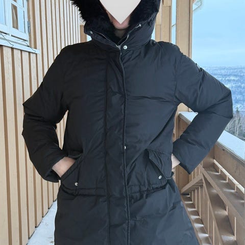 Det er en superfin, lett og varm jakke. Jakken er stor i størrelse og kan helt sikkert passe til ei i størrelse M. Den ble kjøpt for rund 7.000 kr og ikke ble brukt så mye .
