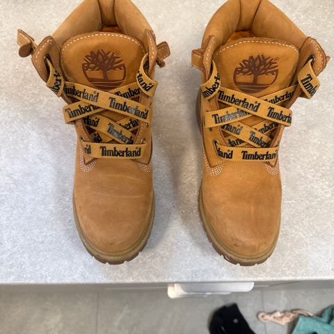 Timberland vinterstøvler i skinn, størrelse 38. Støvlene er i en brun farge med snøring foran og grovmønstret yttersåle i gummi. Overdelen er i lær med polstret kant øverst for bedre komfort. Modellen har høy skaftlengde som dekker ankelen og oppover leggen. Egnet som varme og robuste vinterstøvler til hverdagsbruk i kaldt vær. Vanntett og veldig varme sko.