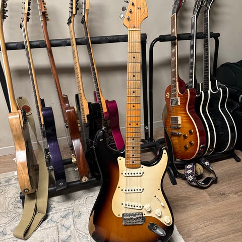 Ask i kroppen og quarter-sawn AA flammelønn i hals og gripebrettet. Halsen har 7,25 radius, 44,5mm nut og er en 1957 soft V profil. Tjukk men deilig lettspillt hals!!