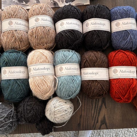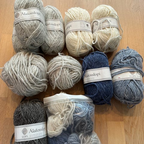 Håndfarget alafosslopi selges. 100 g pr. hespe