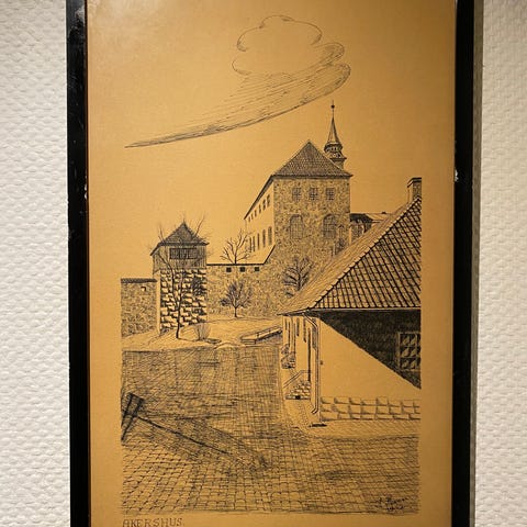Med rammen er målene 56 x 59 cm. Maleriet er i god stand. Kan sendes