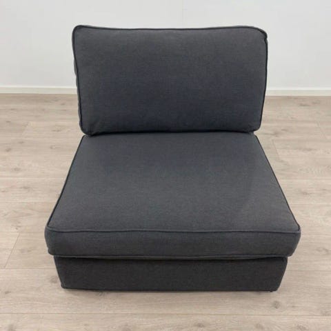 Pent brukt Kivik fotskammel / puff med hvit trekk og oppbevaring selges.