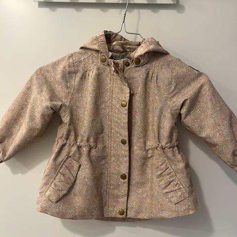 Fin vårjakke fra wheat str. 8 år. Ser veldig fin, men ser du nærmere ser du at den er brukt(se bilder), og har en blå flekk(mulig den går av i vask med skuring). Selges derfor litt rimelig.
