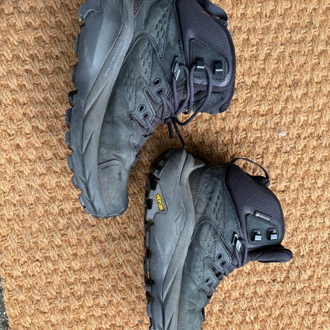 Hoka kaha 2 i strl 42 2/3. disse er brukt på jobb og har mistet litt farge, men fortsatt mye god demping og ingen synlige skader. Selges kun fordi dem ikke passer foten min.