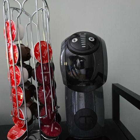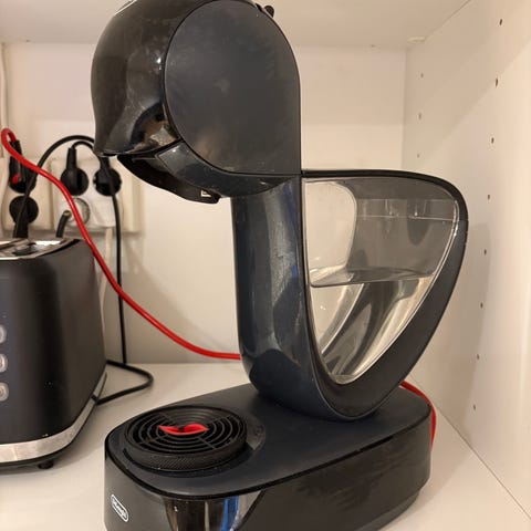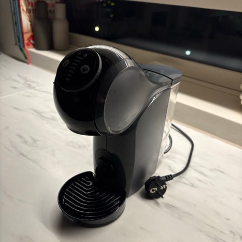 Dolce Gusto kapselmaskin for tilberedning av ulike typer kaffe og varme drikker. Bruker kaffekapsler fra Dolce Gusto-systemet. Egnet for bruk på kjøkken eller kontor der man ønsker enkel og rask brygging av kaffe og andre drikker.
