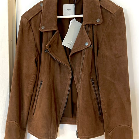 Myk og strechy deilig jakke fra Springfield.imitert semsket skinn.Helt ny.94 prosent polyester og 6 prosent elastan.
