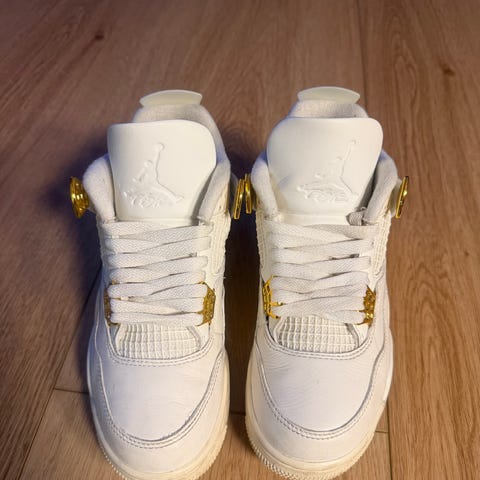 Air Jordan joggesko i størrelse 43. Skoen har overdel i hovedsakelig hvit farge med beige detaljer og klassisk Jumpman-logo. Yttersåle med mønster for grep, og polstret pløse og hælparti for komfort. Passer til hverdagsbruk og fritidsaktiviteter.