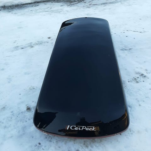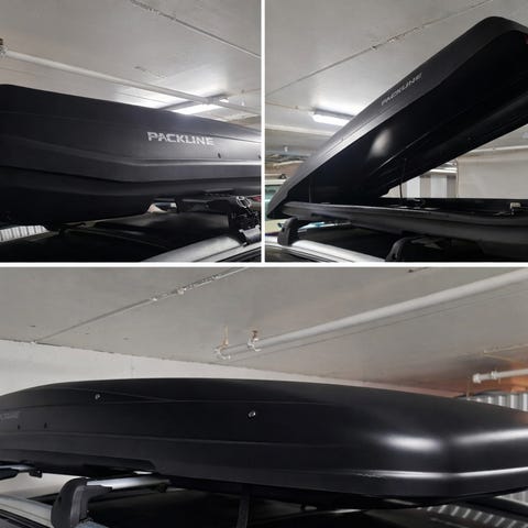Selger en skiboks som er hel og grei. Det som er galt og mangler er to fester til å låse fast boksen i takrailsa. Låsen til selve skiboksen virker og nøkkelen følger med.