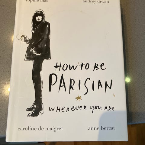 How to Be Parisian Wherever You Are bok på engelsk. Innbundet utgave med smussomslag. Boken er skrevet av Caroline de Maigret, Anne Berest, Audrey Diwan og Sophie Mas, og kombinerer tekst og illustrasjoner om parisisk livsstil og hverdagskultur.