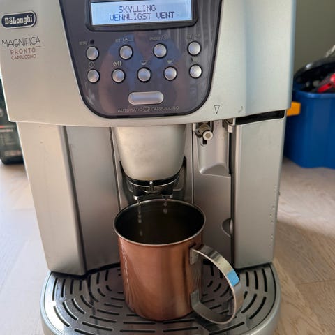 Kaffemaskin for hele bønner, 6-7 år gammel, brygger like god kaffe fremdeles☕️litt slitt og avskallet der kaffen kommer ut( dyse)se bilder