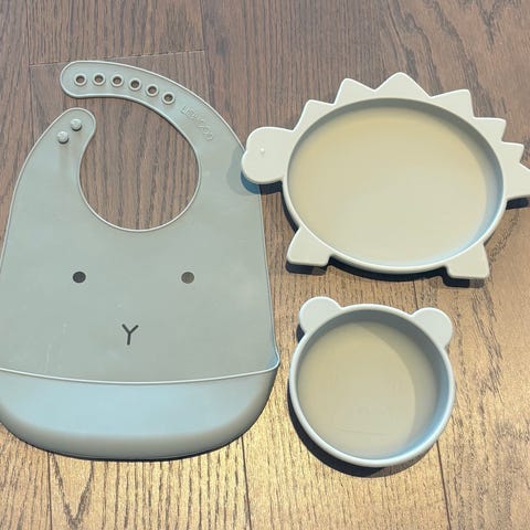 Lyseblå tallerkener og skål i 100% silikon fra kvalitetsmerket Liewood selges samlet ✨