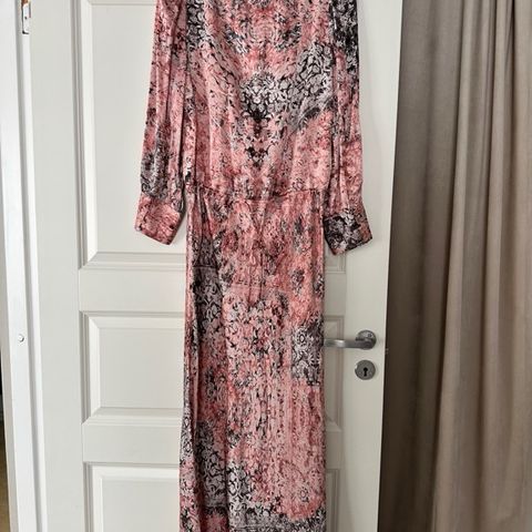 Gustav lang kjole med lekkert mønster. Fin til hverdag og fest. Glidelås foran og knyting i livet . Ny pris 3200 jakken følger med på kjøpet om ønskelig . Selges pga av feil størrelse