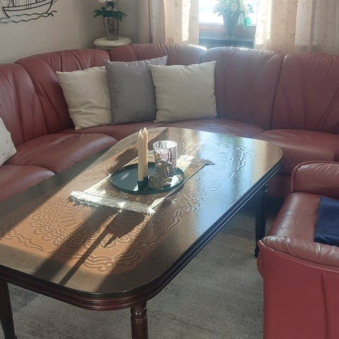 Ellers hel og god å sitte i. Gis bort fordi jeg ikke har plass til den med ny sofa.