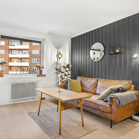 Selger vår nydelige Weston skinnsofa med tungt hjerte, da det ikke er plass i ny leilighet..