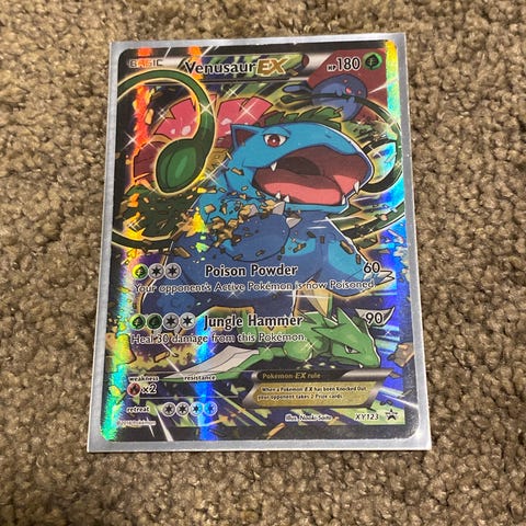 Selger Venusaur fra Pokemon Rumble settet. Kortet er i NM tilstand med litt whitening. Er åpen for trades dersom kjøper har Vintage Holos. Kan hentes i Horten eller sendes på kjøpers regning.