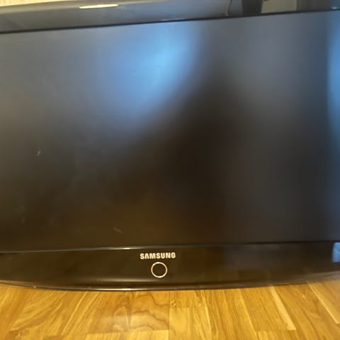 Samsung TV med bordstativ og fjernkontroll. TV-en har flere tilkoblingsmuligheter, blant annet HDMI-innganger, komponent- og komposittinnganger, SCART, VGA (PC-inngang), antenneinngang og nettverksport (LAN). Egner seg til bruk med dekoder, spillkonsoll, PC eller andre eksterne enheter via de tilgjengelige inngangene.