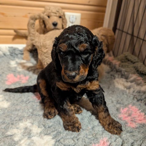 Vi har to nydelige puddel gutter i den litt mer sjeldne fargen phantom sort/tan.