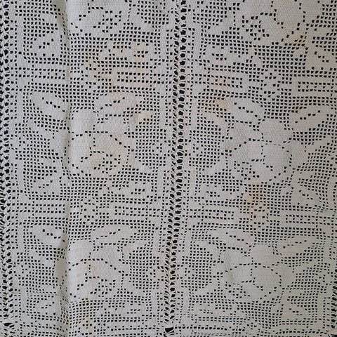 Heklet sengeteppe hvit bomull