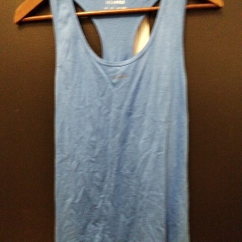 Victoria Secret Sport treningstopp for dame i størrelse XS. Toppen er gråmelert og er laget av 95 % polyester og 5 % bomull. Modellen er ermeløs med rund hals og har åpen rygg med brede elastiske stropper på tvers. Egnet til fitness og annen trening. Vaskes etter anvisning på merkelapp.