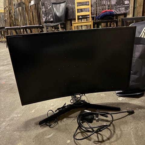 Samsung C27H580FDU skjerm på 27 tommer med buet panel. Skjermen har tilkoblinger som HDMI, VGA og hodetelefonutgang. Passer til bruk med stasjonær PC eller bærbar PC der man ønsker en buet 27" skjerm.