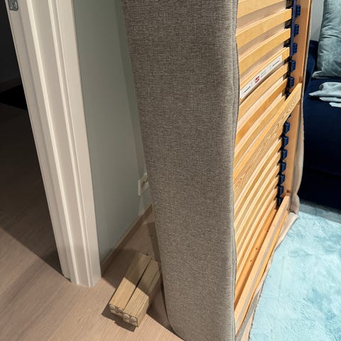 Seng ble ikke brukt, da den sto på gjesterommet. Kjøpte på jysk. Uten madrass og bunn. Brukte bunn som vi hadde fra før av og madrass som vi hadde fra før av. Kjøper kan få seng med bunn og madrass for kr 2000.