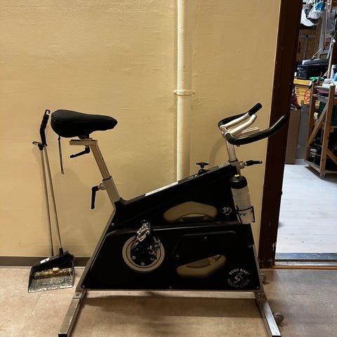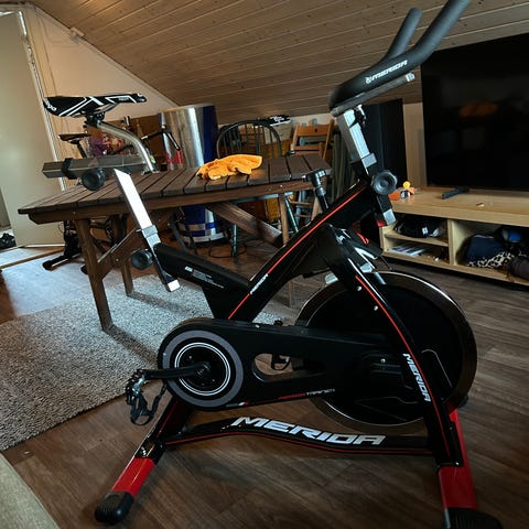 Selger en lite brukt spinningsykkel, en solid og stødig modell for hjemmetrening.