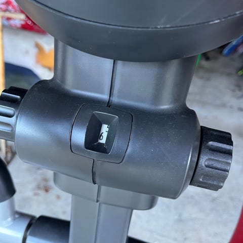 Den har et svinghjul som gir god stabilitet og jevn motstand under økten. Sykkelen er utstyrt med justerbart styre og sete for å tilpasse ergonomien til den som bruker den .