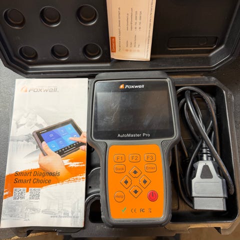 CGSulit AutoMaster Pro CG680Pro diagnoseapparat for bil. Enheten leveres i solid plastkoffert med formtilpasset innredning for apparat, kabler og dokumentasjon. Apparate har display og betjeningsknapper på fronten, samt tilkoblingskabel for OBD/diagnoseport. Egnet for feilkodelesing og diagnose på kompatible kjøretøy der denne modellen støttes. Manual og dokumentasjon følger med i kofferten slik det vises på bildene.