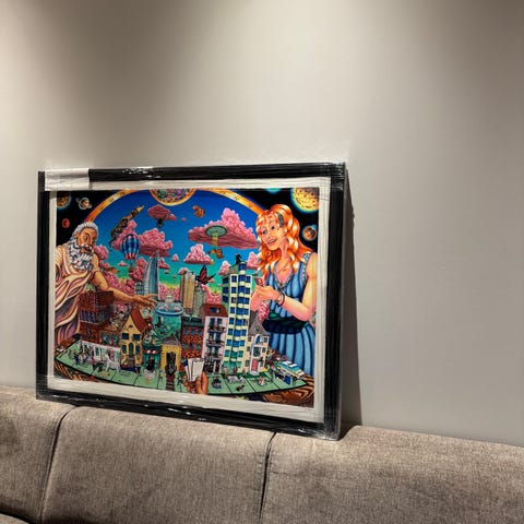 Bildet uten ramme måler H: 75cm, B: 109cm